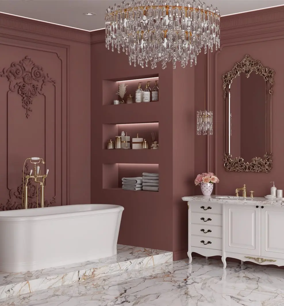 Для ванной выбран оттенок "Винтажной розы" из веера Desire.