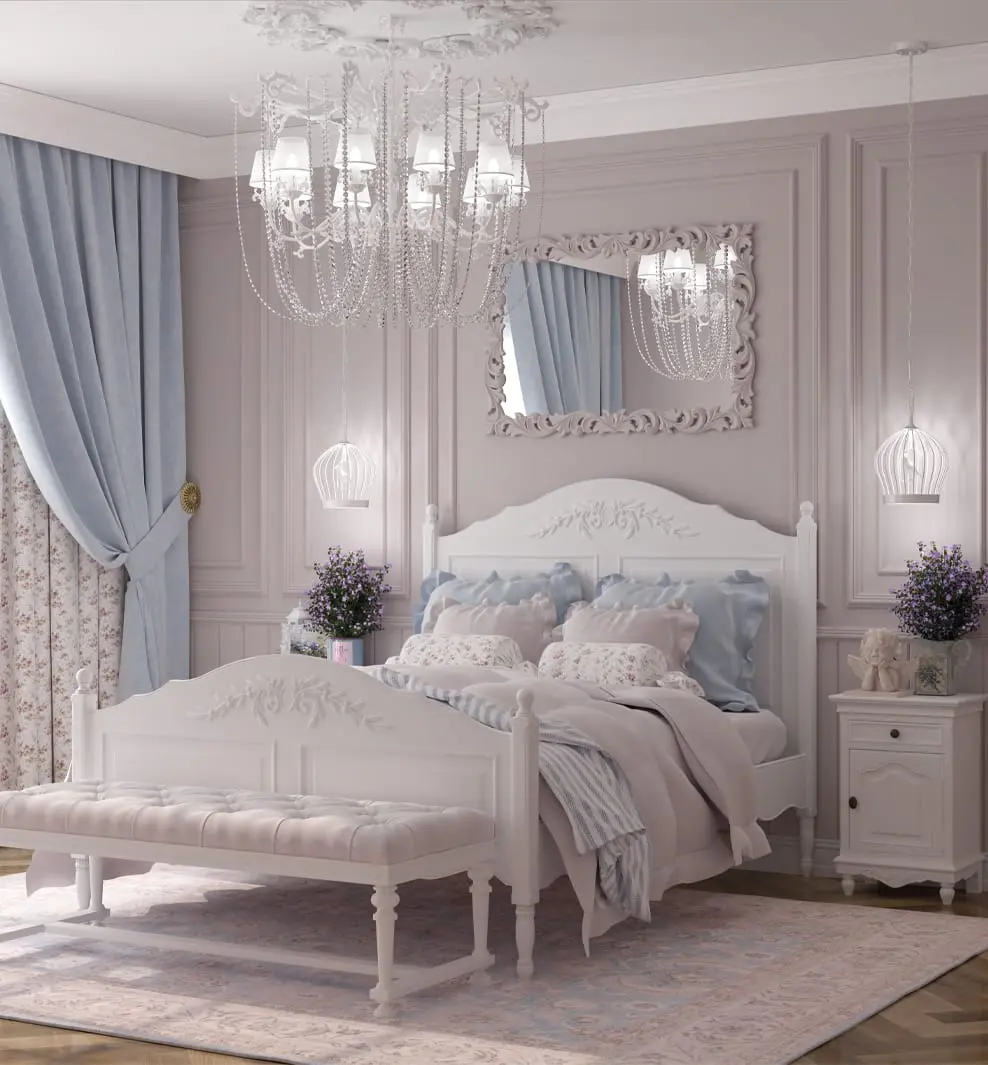 Этот светло-серый цвет создает ощущение легкости и простора, придавая комнате элегантный и современный вид.