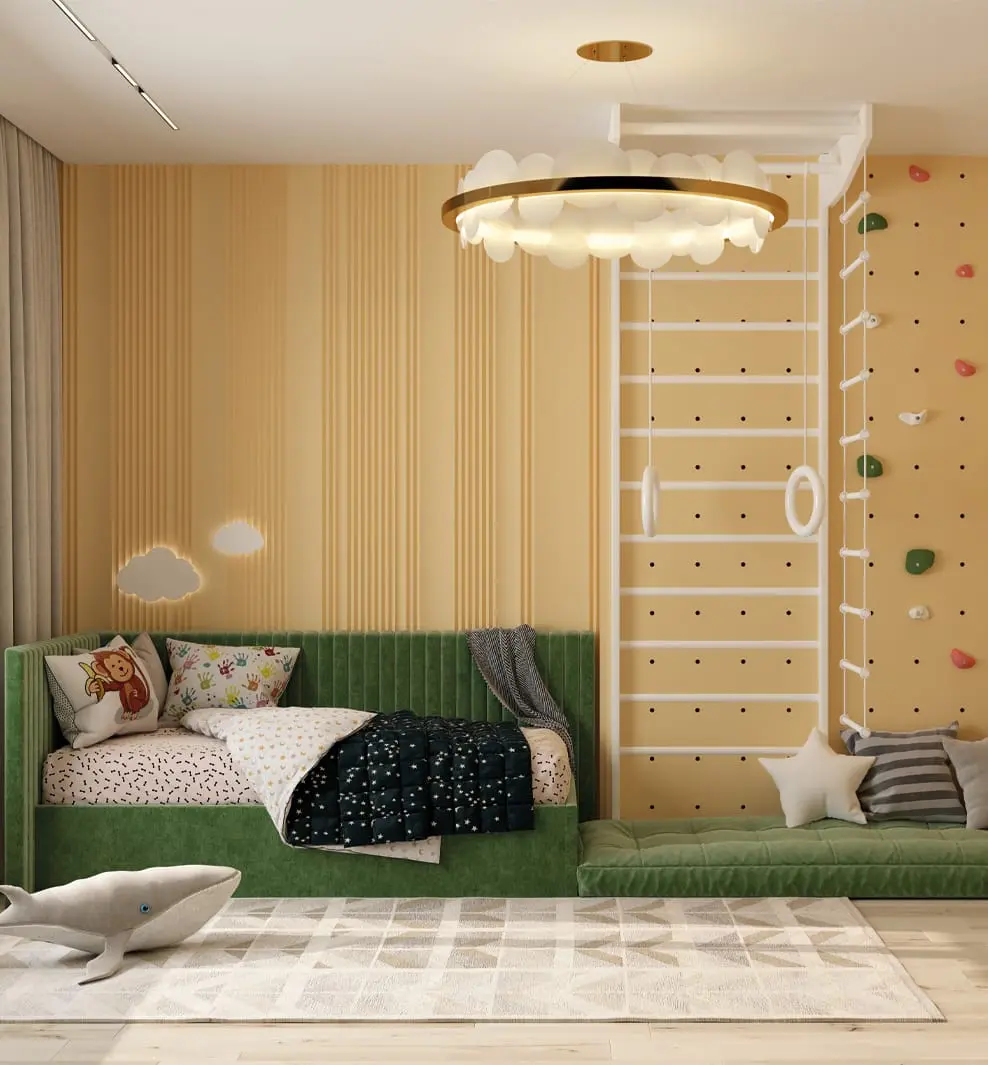 Этот цвет наполняет пространство светом и теплом, превращая комнату в уютное место для игр и отдыха.