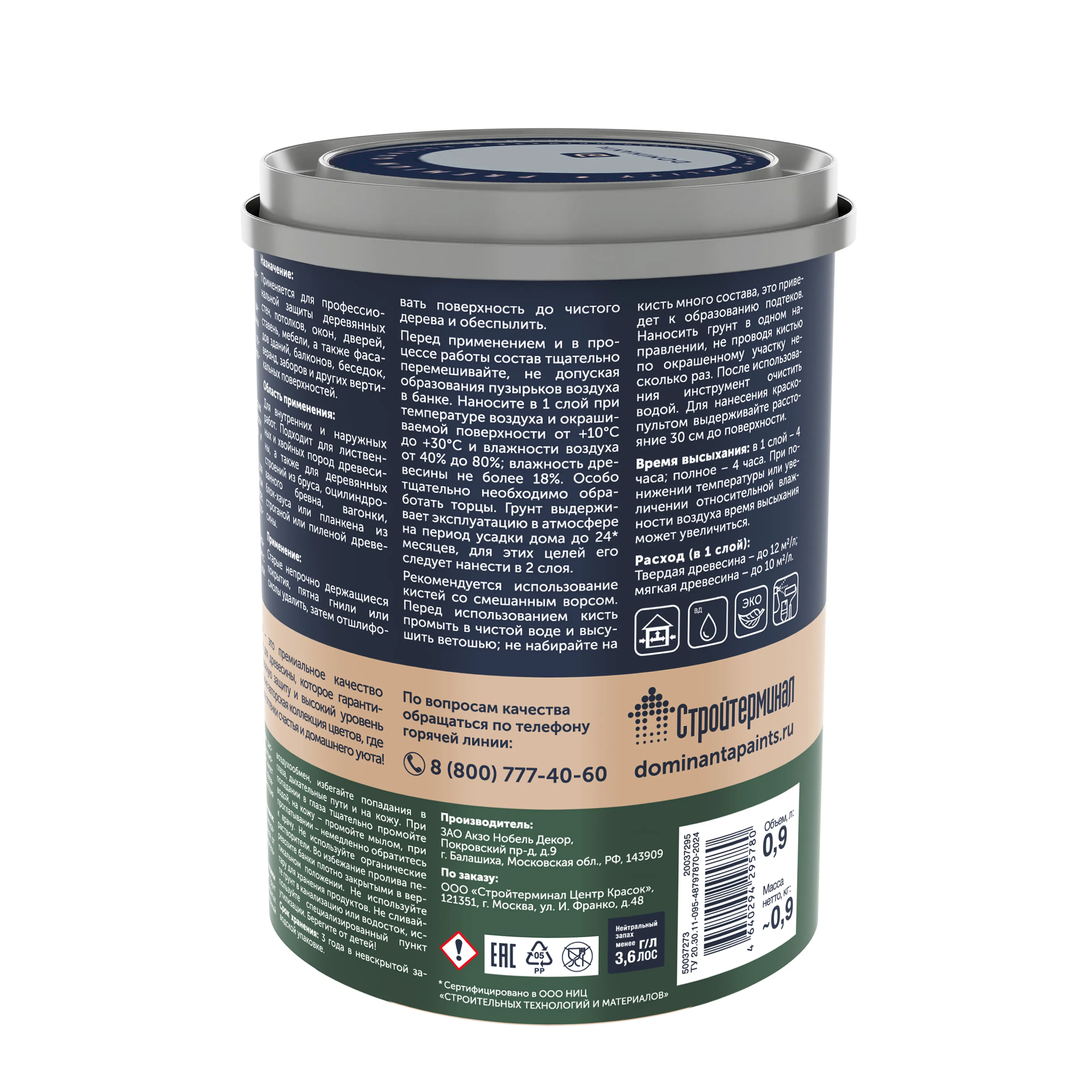 DOMINANTA SmartWood Primer / ДОМИНАНТА СмартВуд Праймер грунт-антисептик для защиты древесины