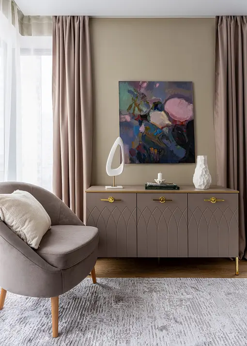 Проект стал примером того, как краска может стать главным выразительным инструментом: подчеркнуть стиль, создать настроение и визуально зонировать пространство.