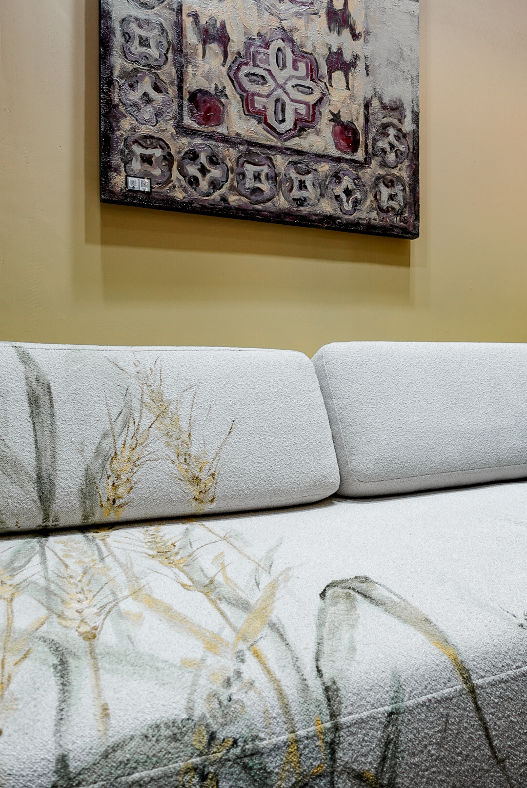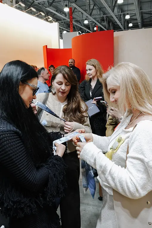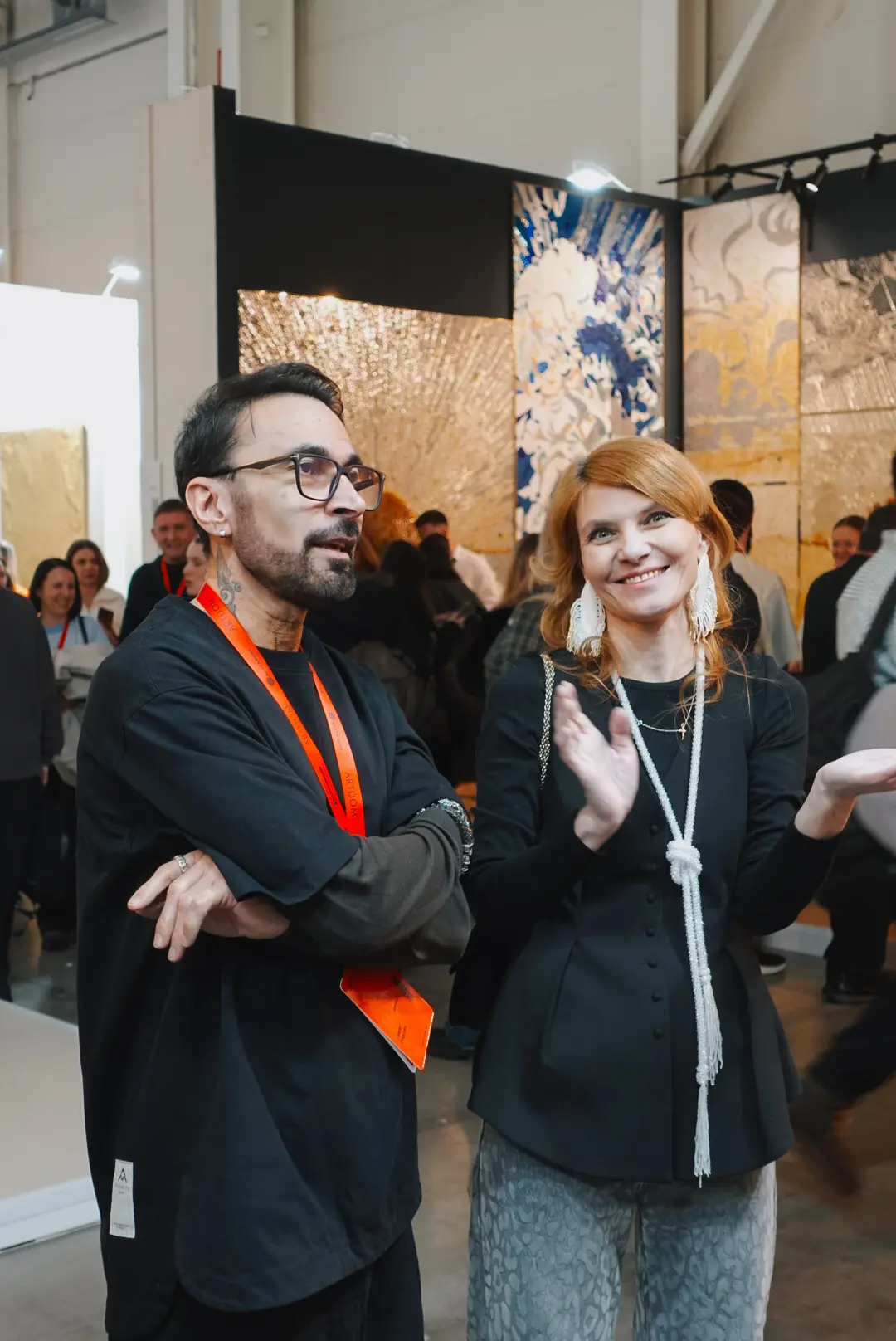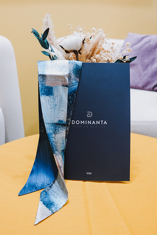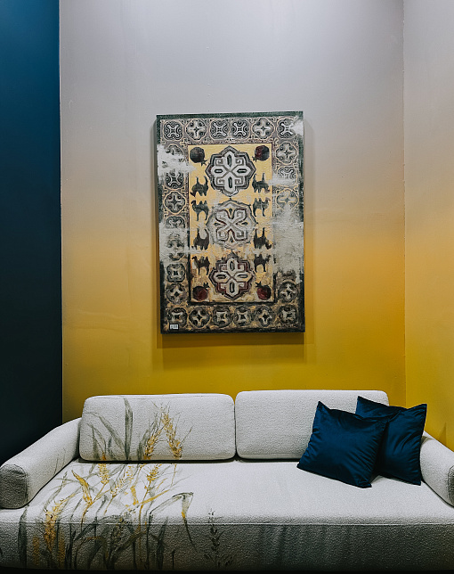 Главным акцентом стенда DOMINANTA стали работы художника Гамлета. Для создания серии художник использовал оттенки из палитры «Арабский вечер». И эти же глубокие, благородные тона полностью определили облик нашего пространства. Получился не просто стенд, а цельная история о том, как цвет задает настроение и формирует впечатление.