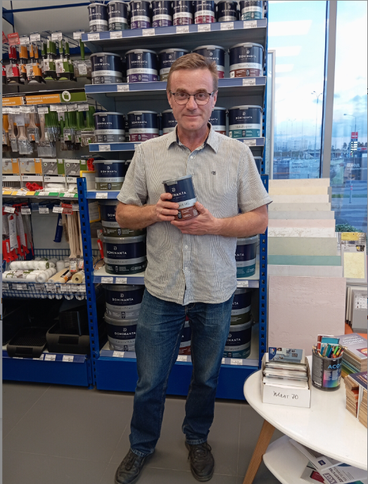 Хороший магазин, всегда покупаем тут краски. Замечательный продавец Оксана, посоветовала краску для окон Dominanta. Понравился выкрас на образце, хорошо укрывает.