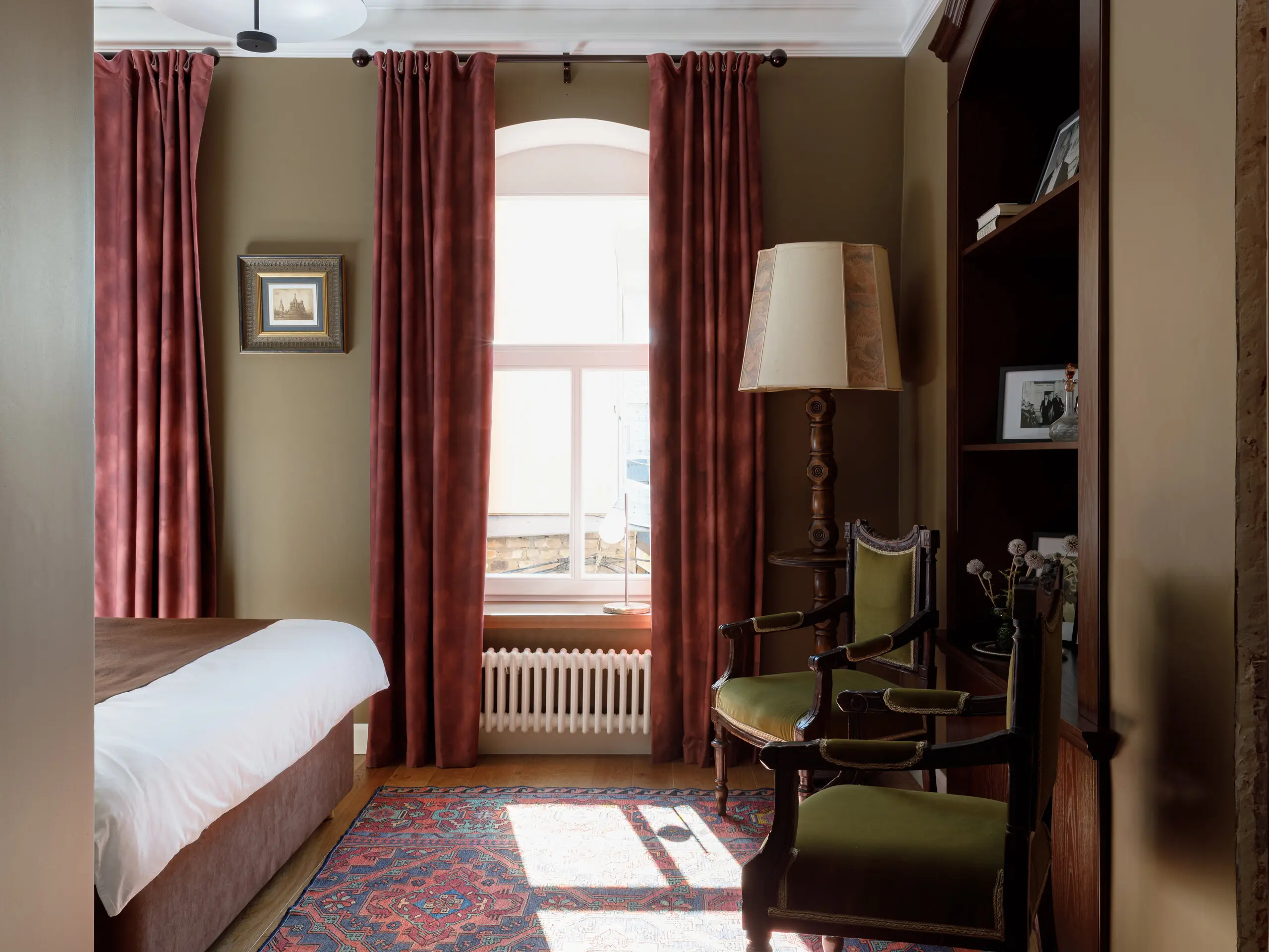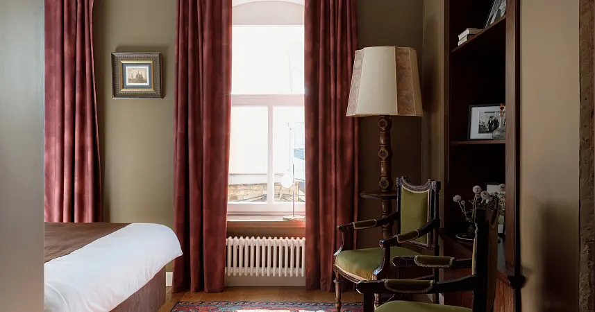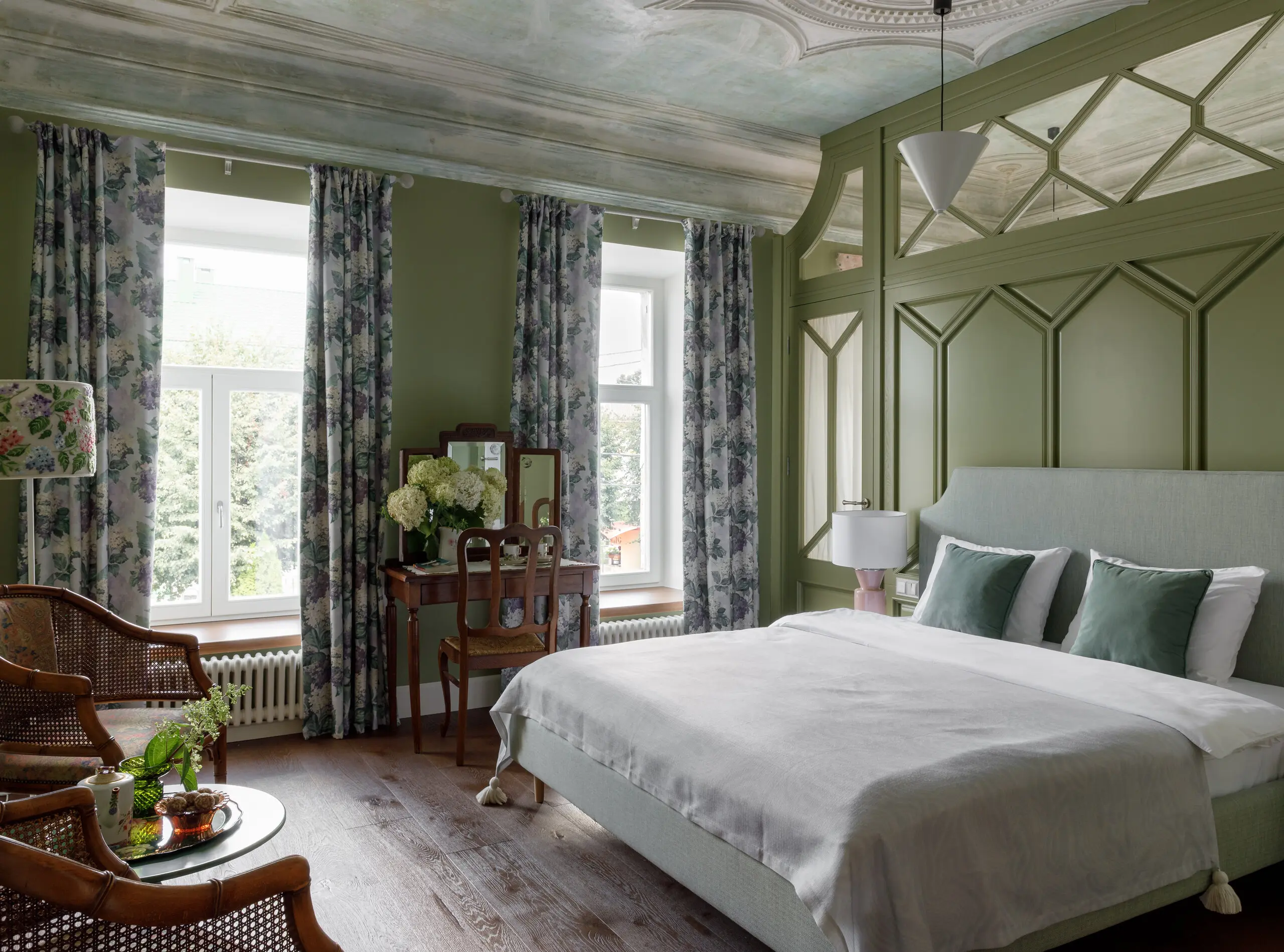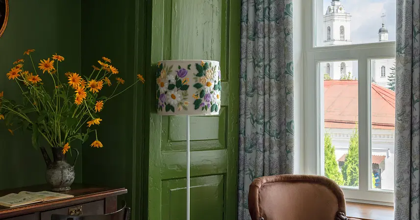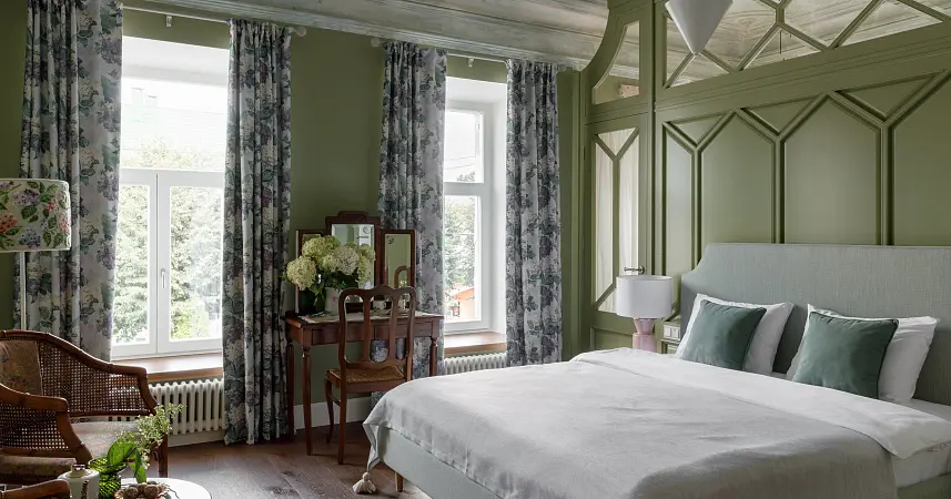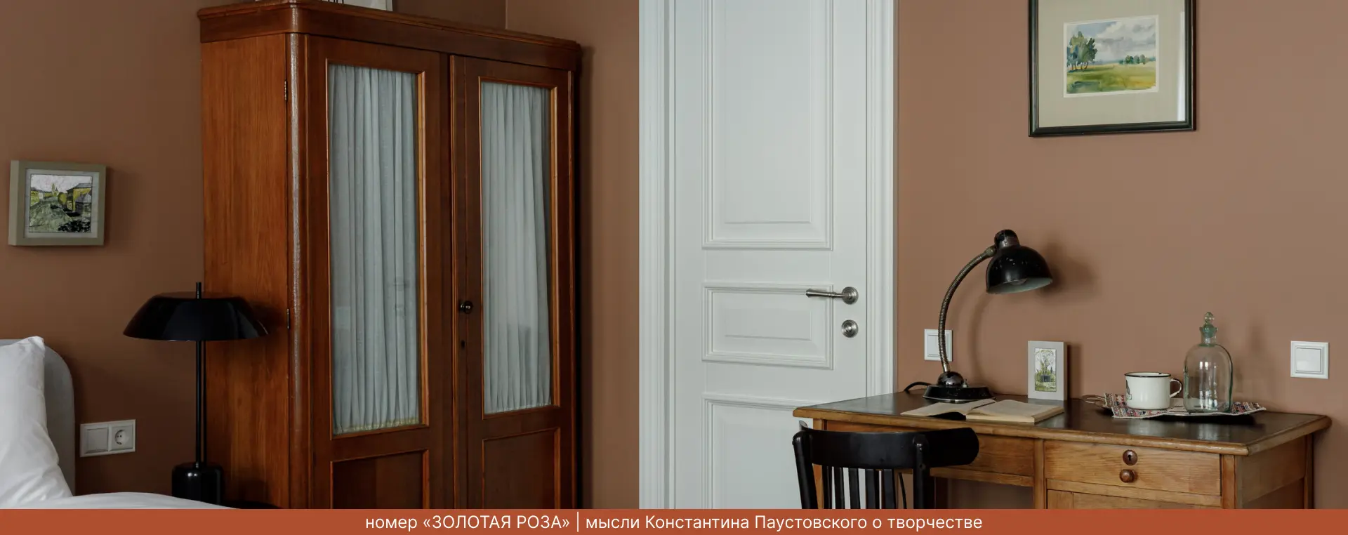 Евгения поставила перед собой задачу не просто отреставрировать здание, а оживить дух Тарусы — города, который на протяжении веков вдохновлял поэтов, художников и музыкантов. Так родилась идея десяти уникальных номеров, каждый из которых посвящен творчеству выдающихся «тарусских дачников». Это читается в тщательно подобранных цветовых палитрах, мебели и декоре.