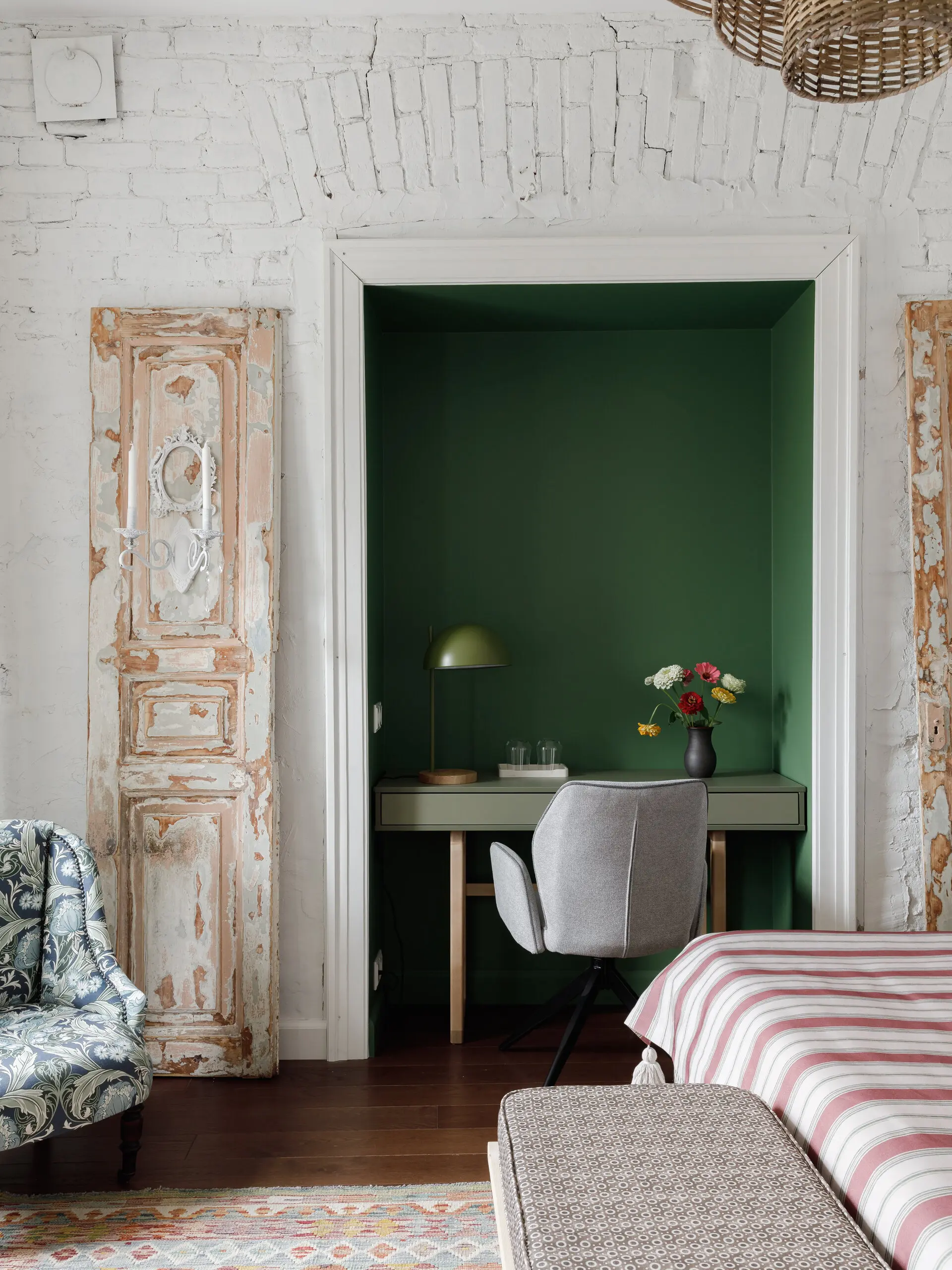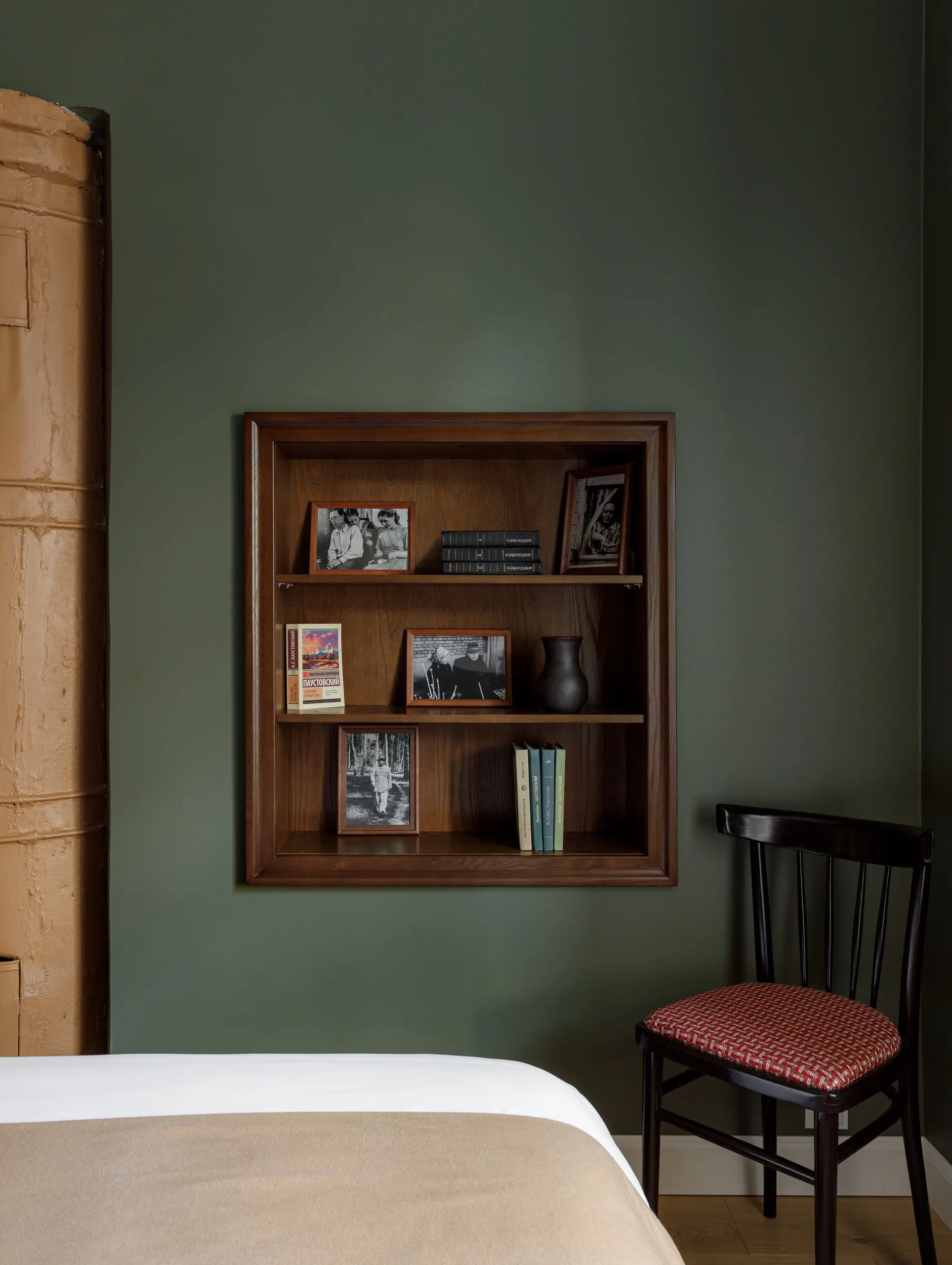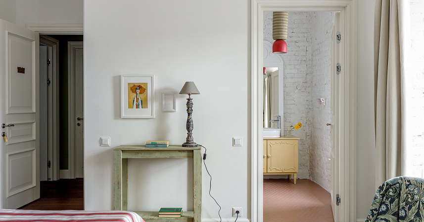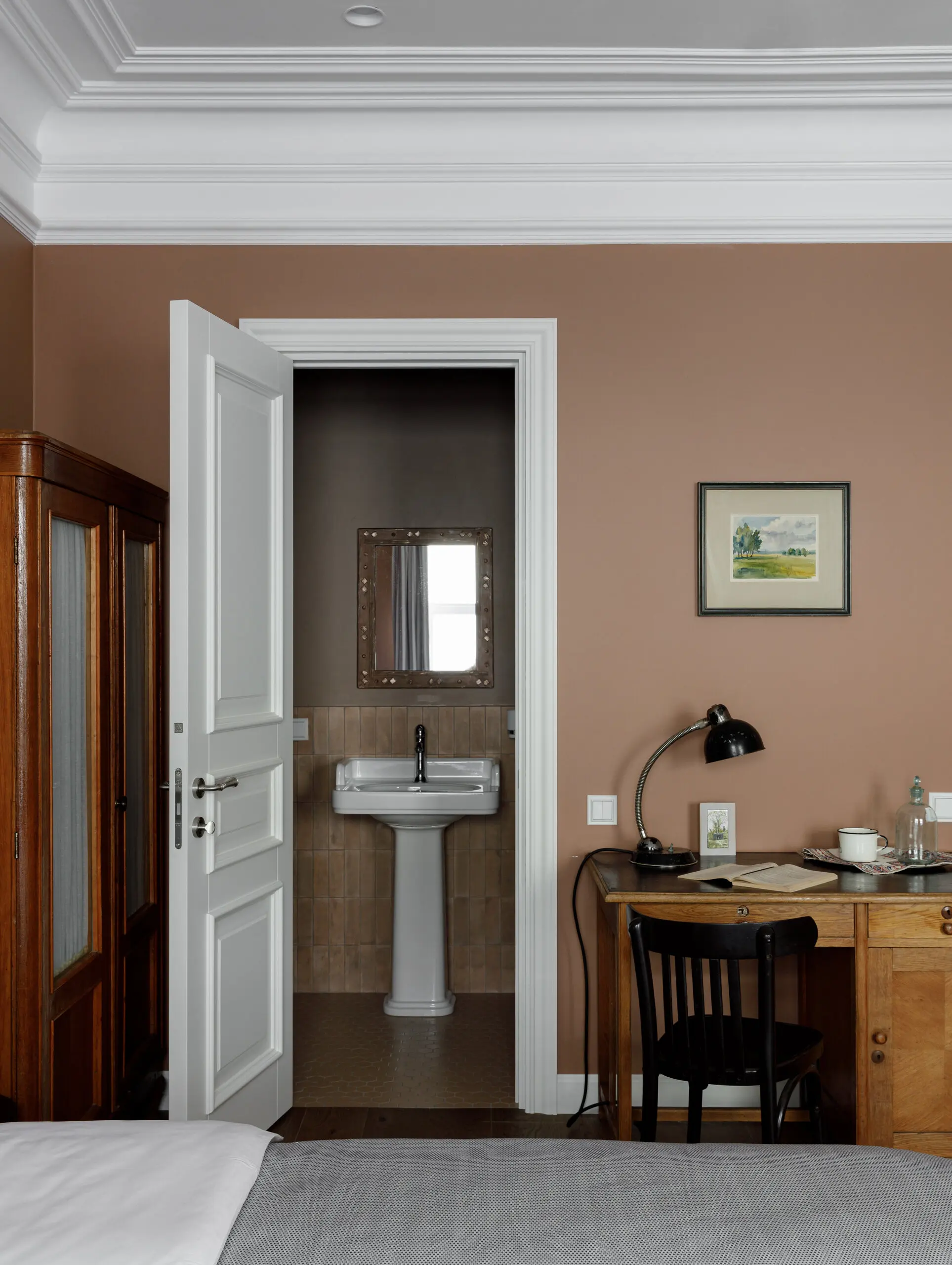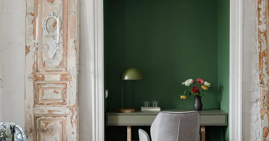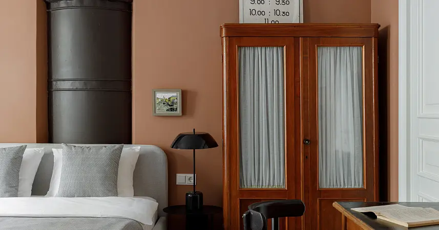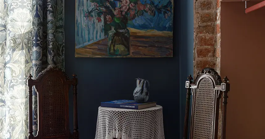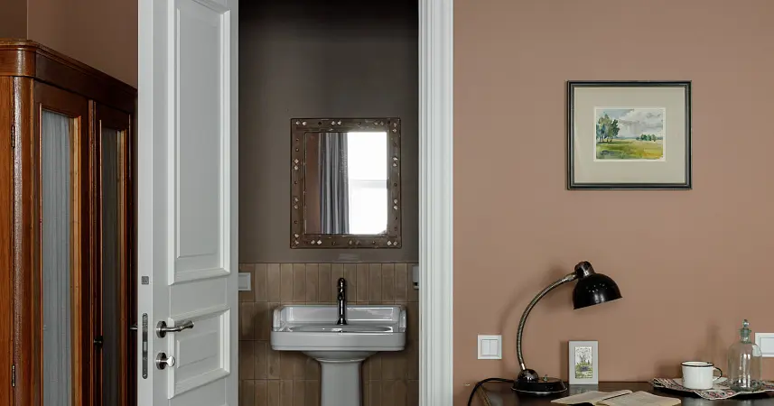 В этом уникальном проекте краски Dominanta стали настоящим художественным инструментом. Каждый выбранный цвет работал на создание особой атмосферы, становясь связующим звеном в истории, выразительным акцентом или тонким фоном для других деталей интерьера. Придание цвету смысловой нагрузки позволило Евгении воплотить все задумки с абсолютной точностью. Благородные, насыщенные и глубокие оттенки преобразили каждый номер, став ключевым элементом повествования.