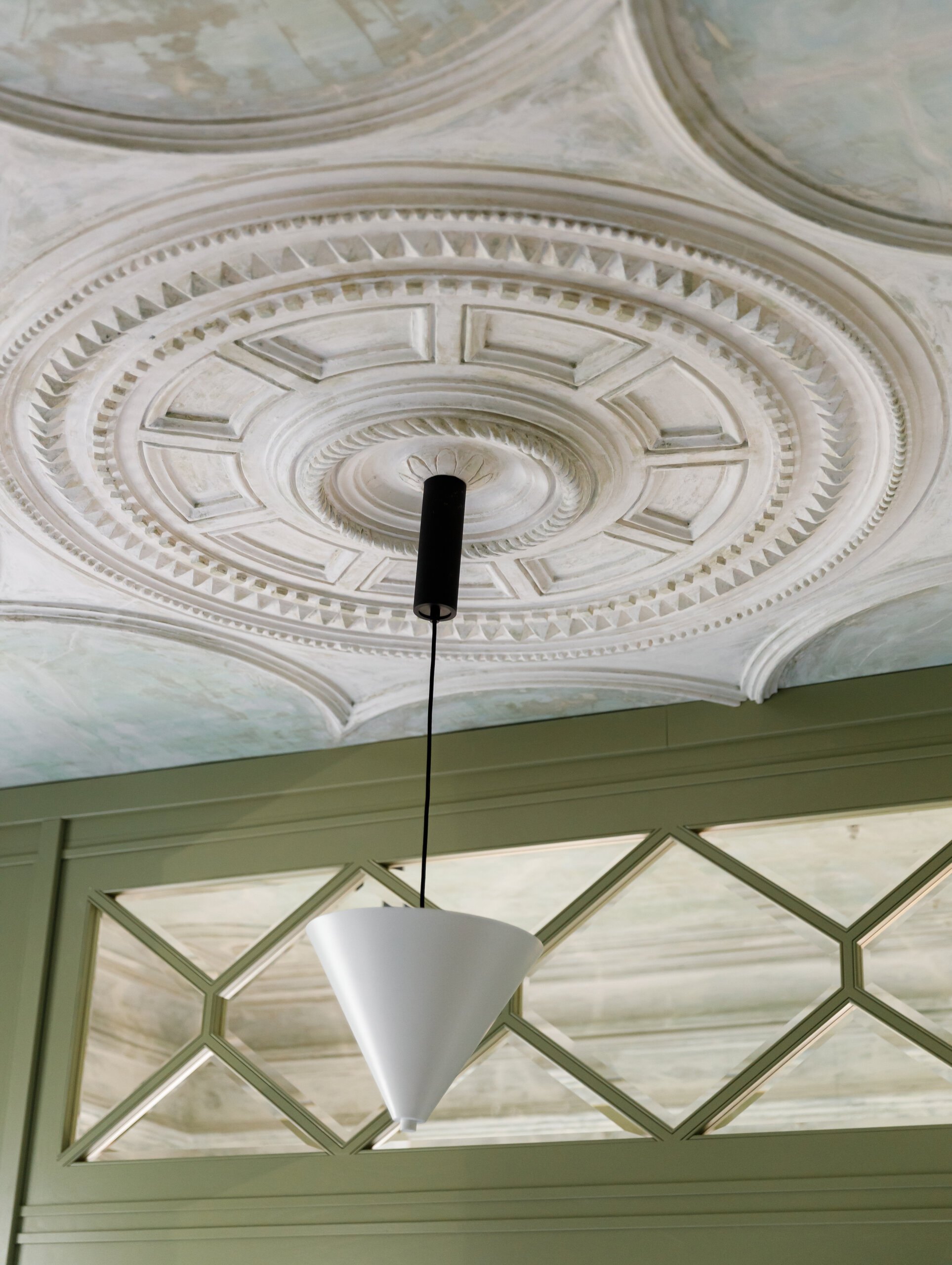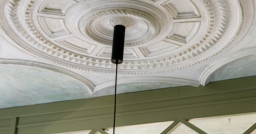Краска для стен и потолков с глубоким матовым финишем создала «дышащую» поверхность без бликов, визуально выравнивая поверхности и делая пространство более объемным. Тиксотропность этой краски обеспечила удобное нанесение без потеков и идеально ровное покрытие на потолках сложной формы.